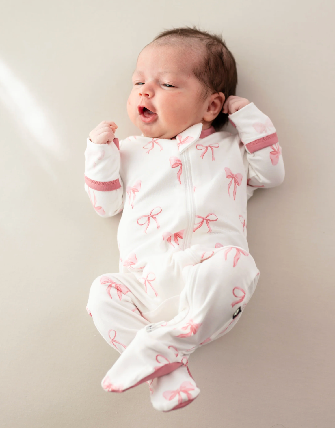 KYTE BABY ZIPPERED FOOTIE IN BOW