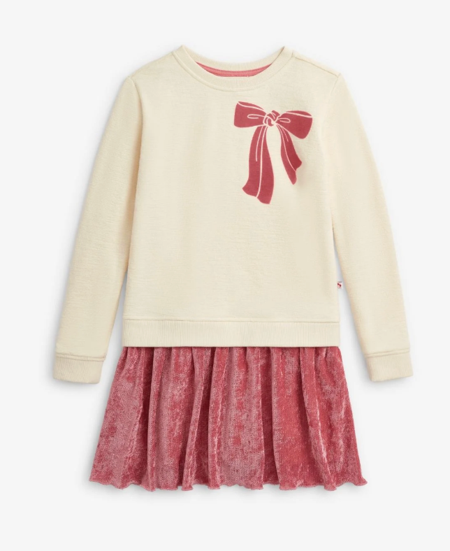 The Appaman Sweatshirt Dress in Cream is the perfect mix of cozy and cute! This soft, comfy dress features a cream top with a sweet pink bow detail that adds a touch of playful charm. The pink skirt brings a fun pop of color, making it perfect for twirls and everyday adventures. Crafted for comfort, it’s easy to throw on for school, playdates, or weekend outings. Parents will love how versatile and durable it is, while kids will enjoy its fun, stylish vibe. Whether paired with leggings or worn solo, this dress is ready for whatever the day brings!
