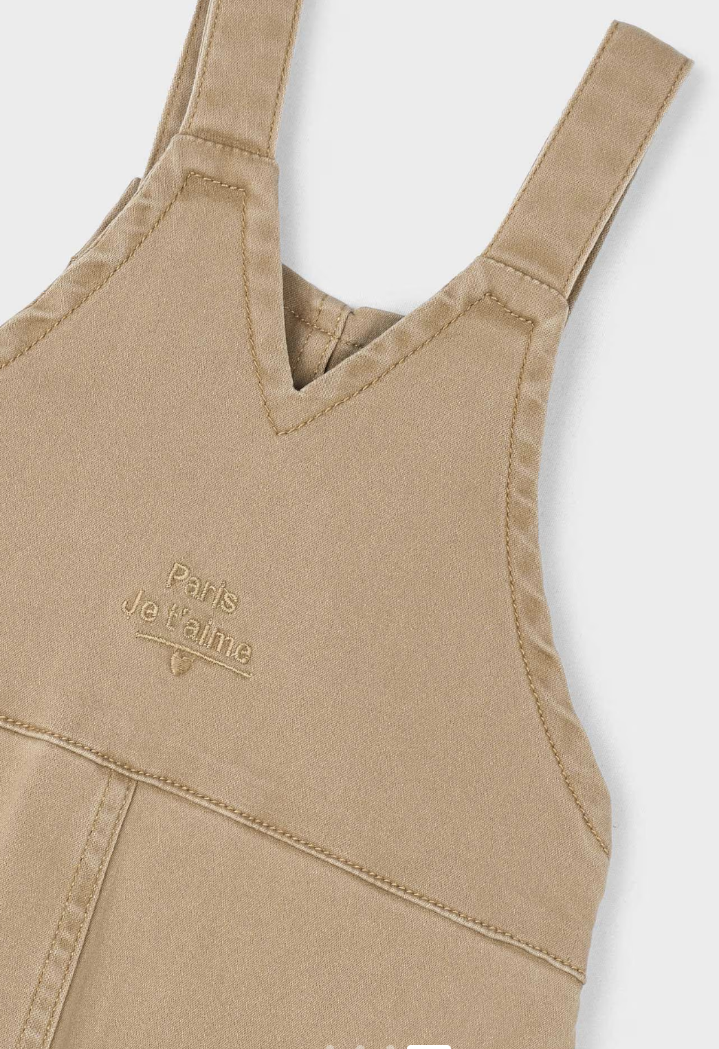 Original dungarees for girls. Buttons to fasten. Comfortable and resistant twill fabric. Functional front pockets.