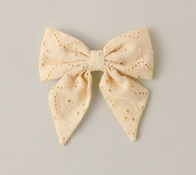 A sweet bow attached to a rose gold alligator clip for easy wear.
