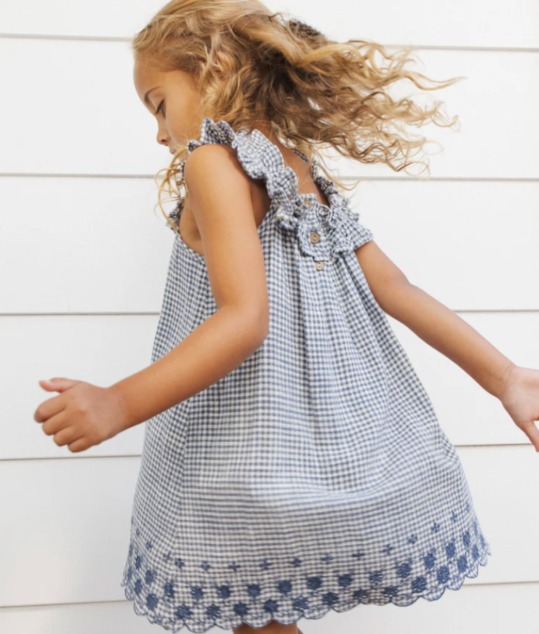With a ruffled neckline and scallop eyelet embroidery, the Lennon Dress effortlessly welcomes spring.