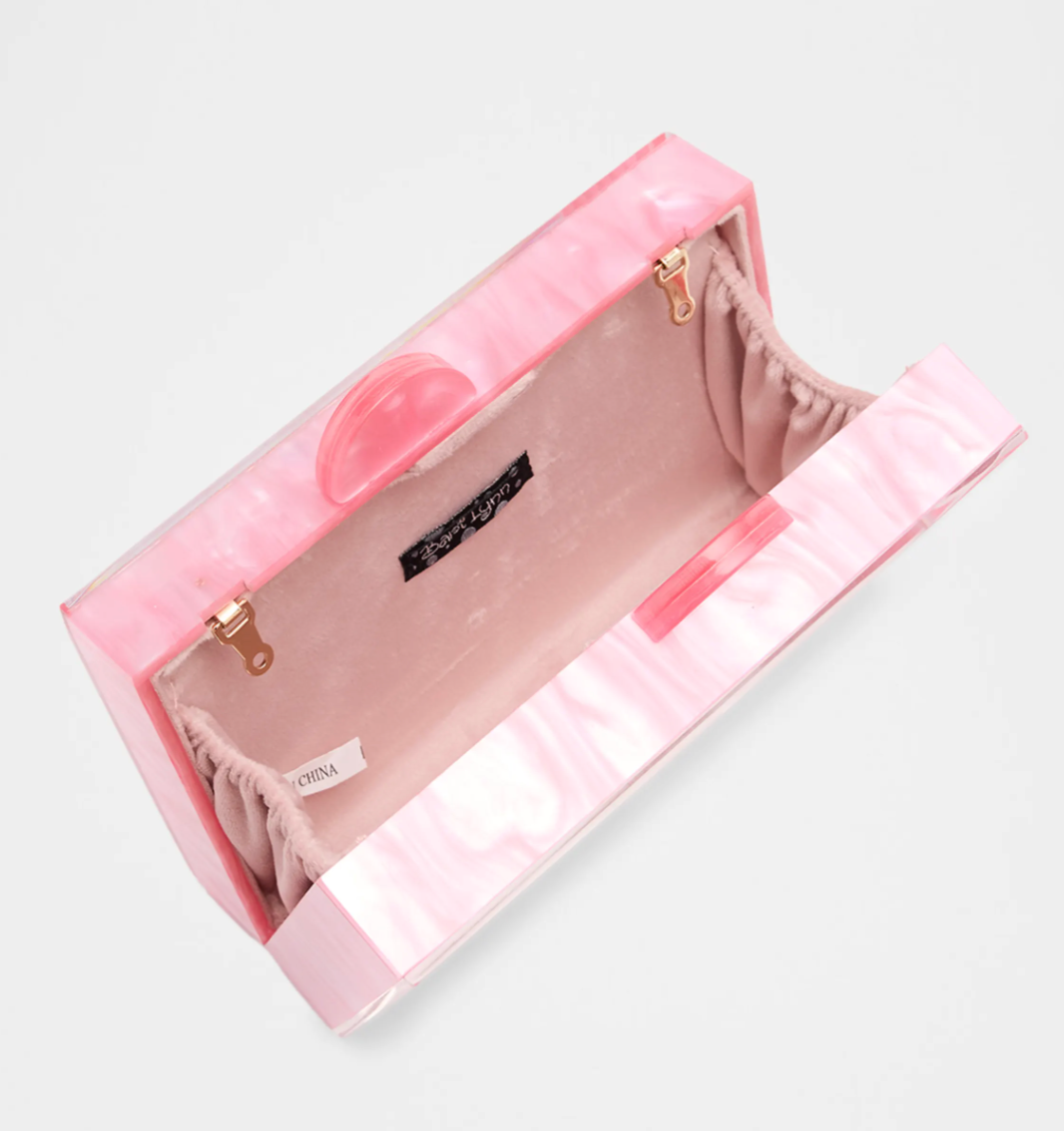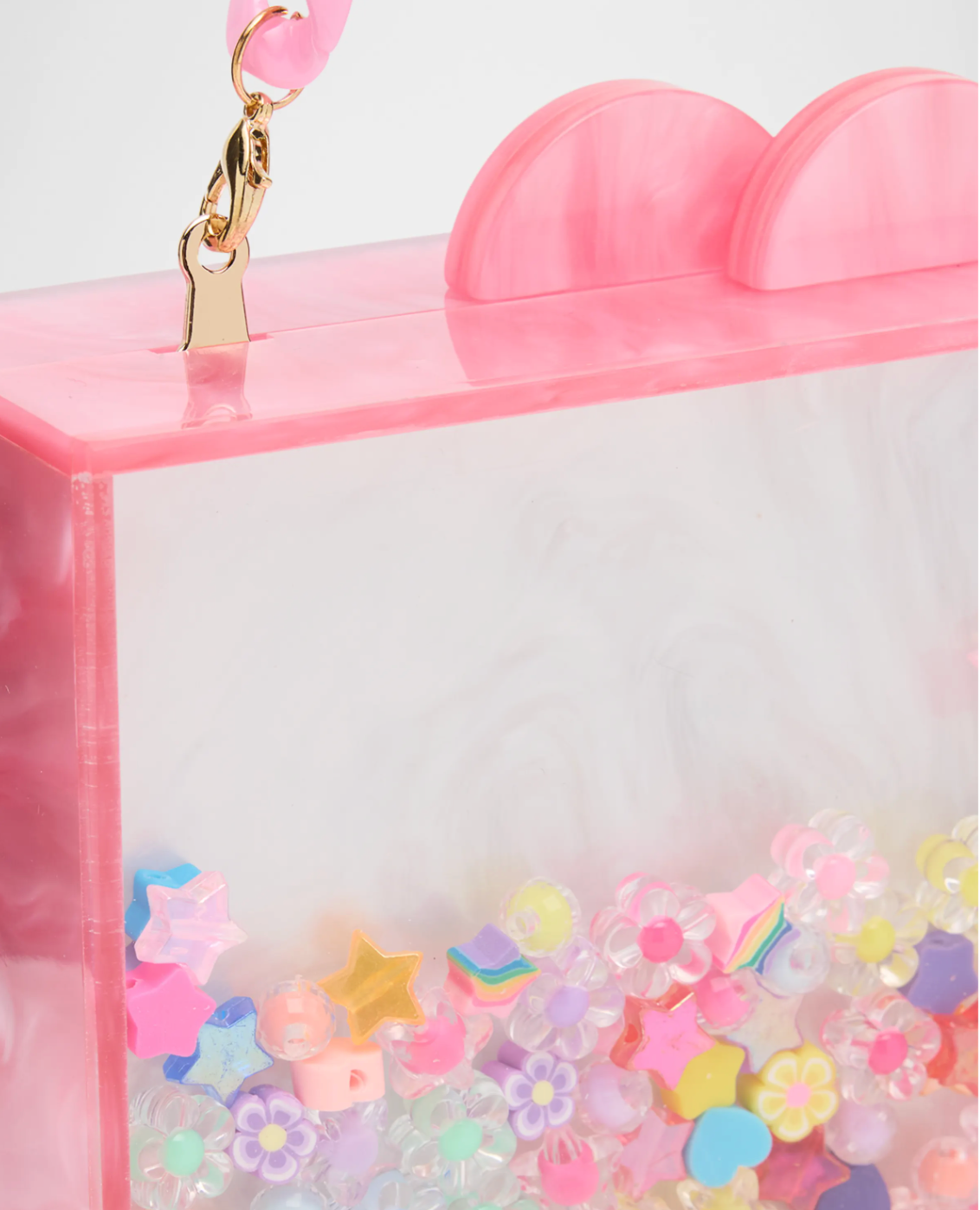 This box-shaped crossbody bag from Bari Lynn features a playful design with a mix of charms that is meant to shake.