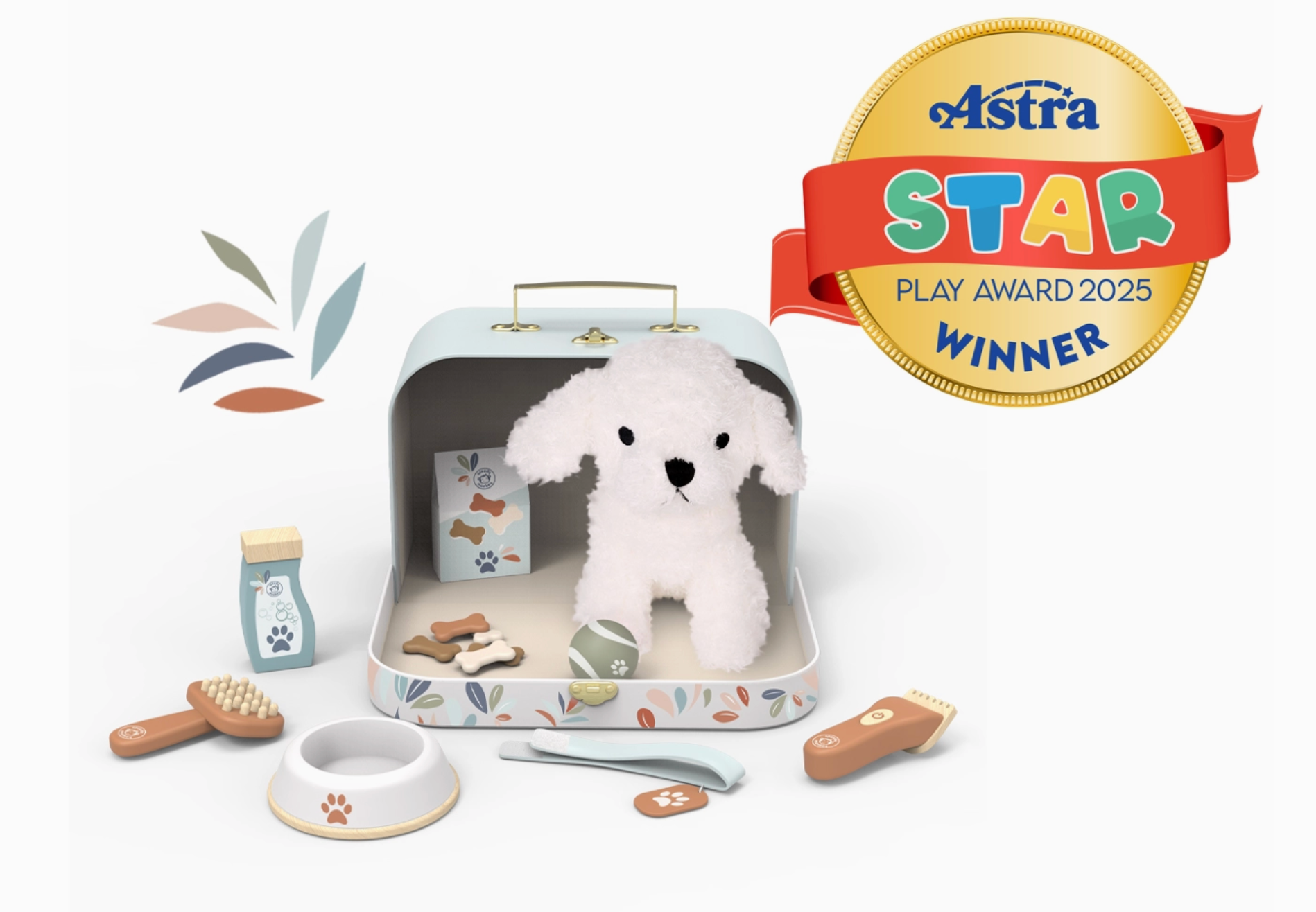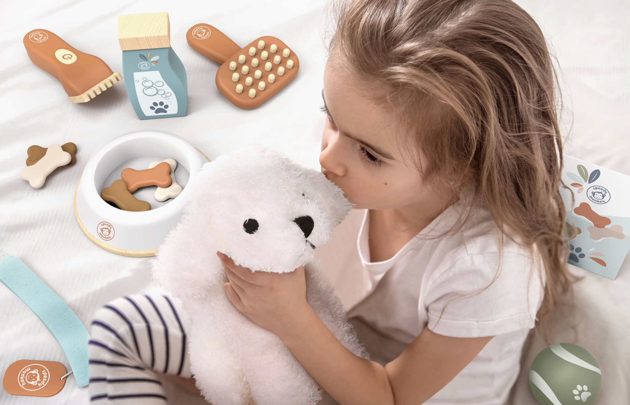 Features dog snacks, bowl, brush, collar and a few more accessories.  Plan your trip and take along all that is needed for you and your dog to live fun adventures! This toy is crafted from sustainably sourced wood from FSC® certified forests and coated with non toxic paint.