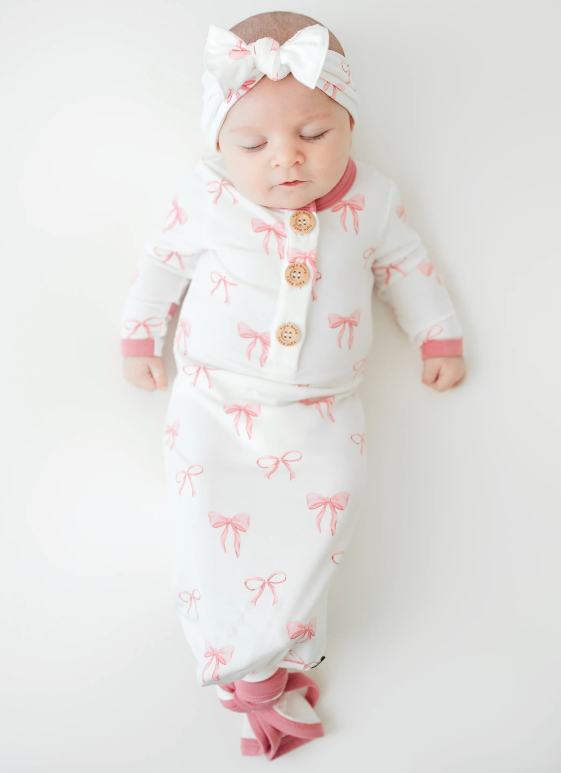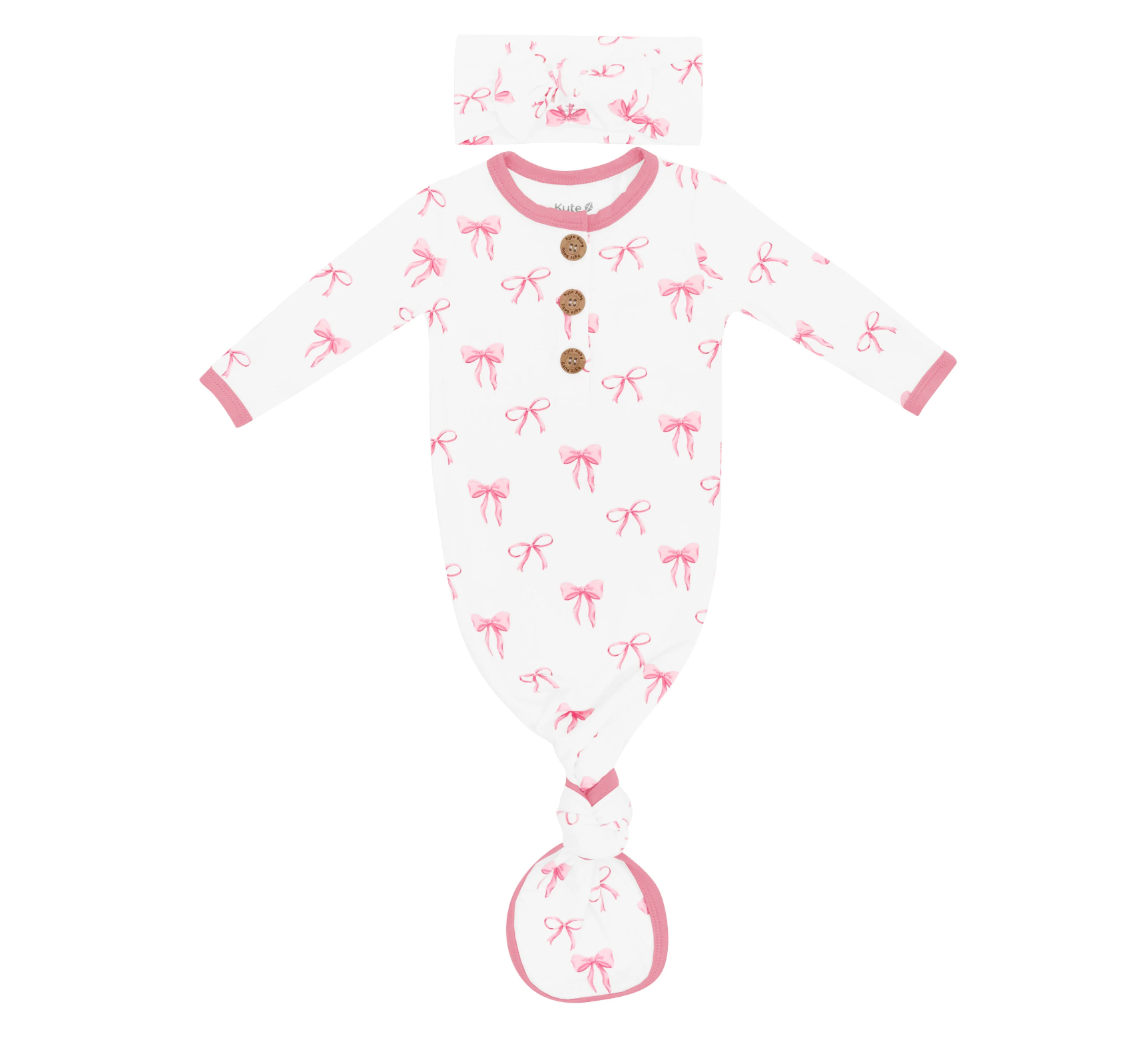 KYTE BABY KNOTTED GOWN WITH BOW HEADBAND SET IN BOW | NEWBORN