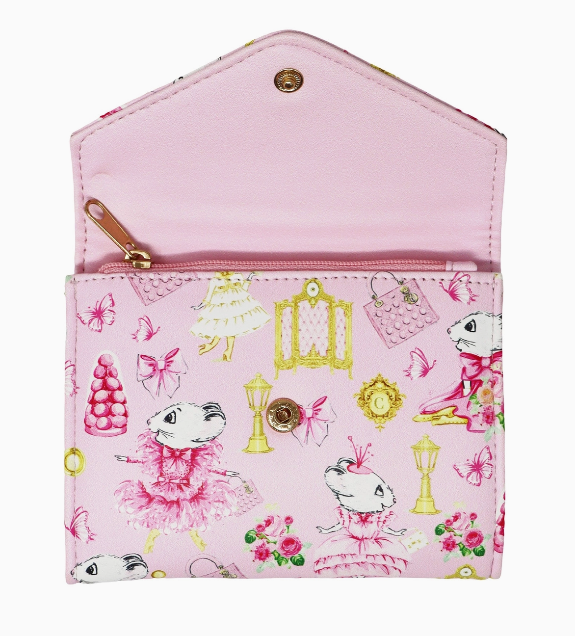 Inspired by the best-selling Children's book, Claris - The Chicest Mouse in Paris™, by acclaimed fashion illustrator Megan Hess. Pink Poppy’s Claris the Chicest Mouse in Paris Wallet is a must-have for little fashion lovers who adore Parisian style and elegance! Featuring a gorgeous all-over Claris print, this stylish wallet is both practical and chic, making it the perfect place to store pocket money and little treasures. Made from high-quality faux leather, the wallet folds out to reveal multiple compartments. With dedicated sections for cards, coins, and notes, it helps keep everything neatly organised while adding a touch of Claris charm to every adventure. Designed in Australia