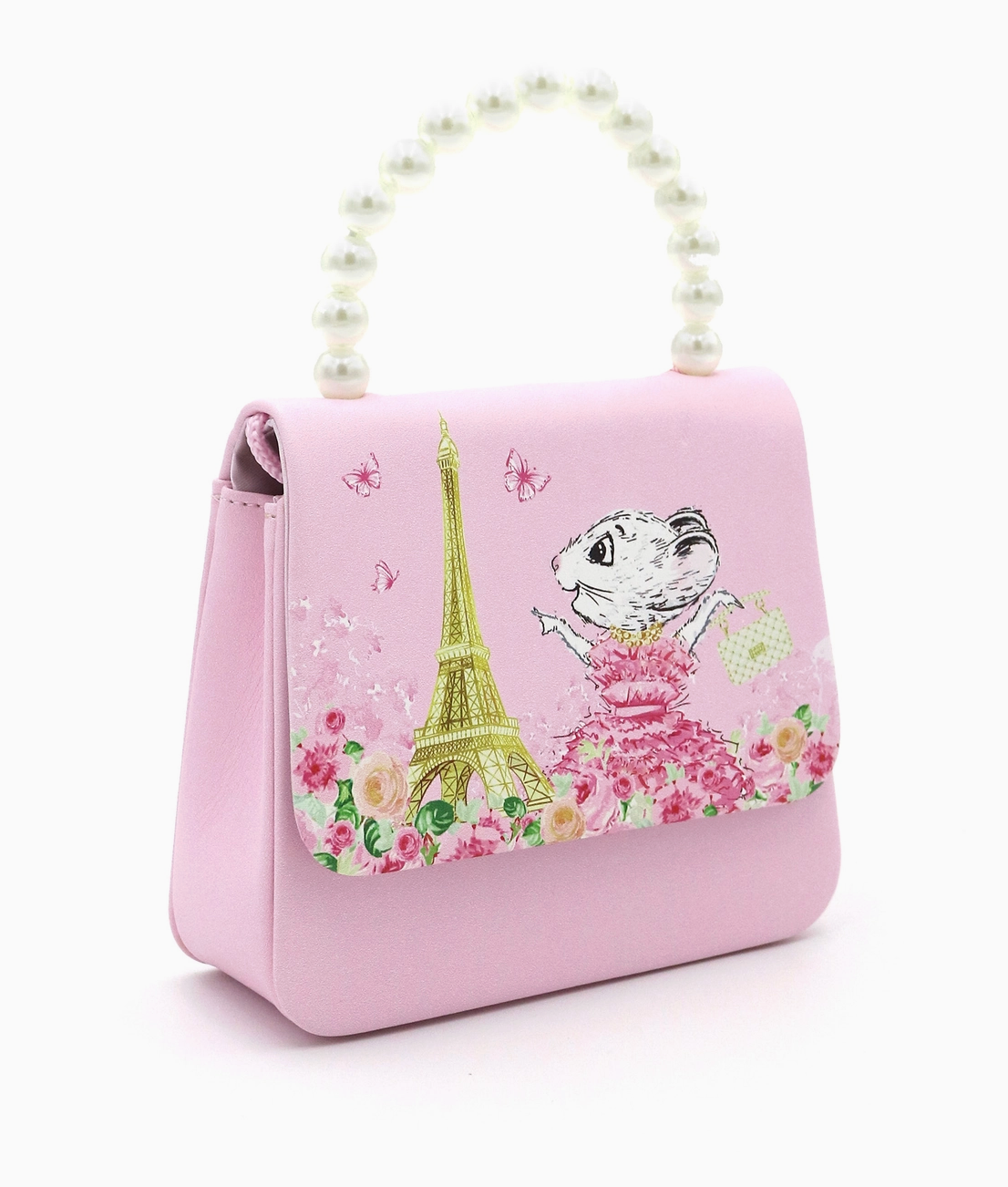 Inspired by the best-selling Children's book, Claris - The Chicest Mouse in Paris™, by acclaimed fashion illustrator Megan Hess. Pink Poppy’s Claris the Chicest Mouse in Paris Handbag with Pearl Handle is a must-have for little fashionistas who love elegance and adventure! Inspired by Claris, the Chicest Mouse in Paris, this beautiful hard-case handbag is both stylish and practical—perfect for carrying little treasures most fashionably. The handbag features a soft pink fabric base with a stunning faux leather flap adorned with an exquisite Claris print. The artwork captures Claris in a breathtaking fashion dress, surrounded by gorgeous flowers, with the iconic Eiffel Tower in the background—bringing a touch of Parisian charm to every outfit! For a touch of elegance, the handbag is designed with a pearlescent beaded handle, allowing little ones to carry it in true Claris style. It also includes a long shoulder strap for hands-free wear, making it perfect for dress-ups, playdates, or everyday adventures. Designed in Australia